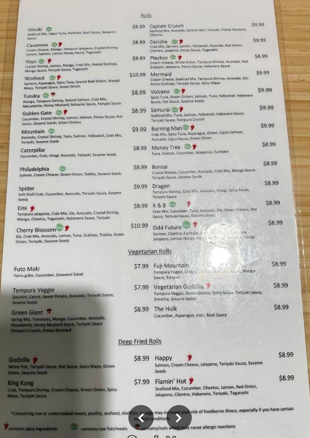 Headline on the newsflash: Vegetarian options are quality 🤌 I know, I know, people come here for the fish, and trust me, my fish-eating-friends had an insane 5-star experience with the food quality, but I’m here to speak up for the friends who go out and DON’T want to eat fish, maybe for your friends who don’t want to try sushi because of the fish. We chose this place so both my friends and I could have variety, and we thoroughly enjoyed the whole night. Green Giant was the bombest. Fuji Mountain was sweet. Vegetarian Godzilla was spicy and crispy. Bonus to the whole ‘food experience’ the staff were genuinely chill and friendly. In a way that I can’t explain, them alone would make me go back again. (My friends recommend the Mickey Mouse as the must-try for fish people.)
